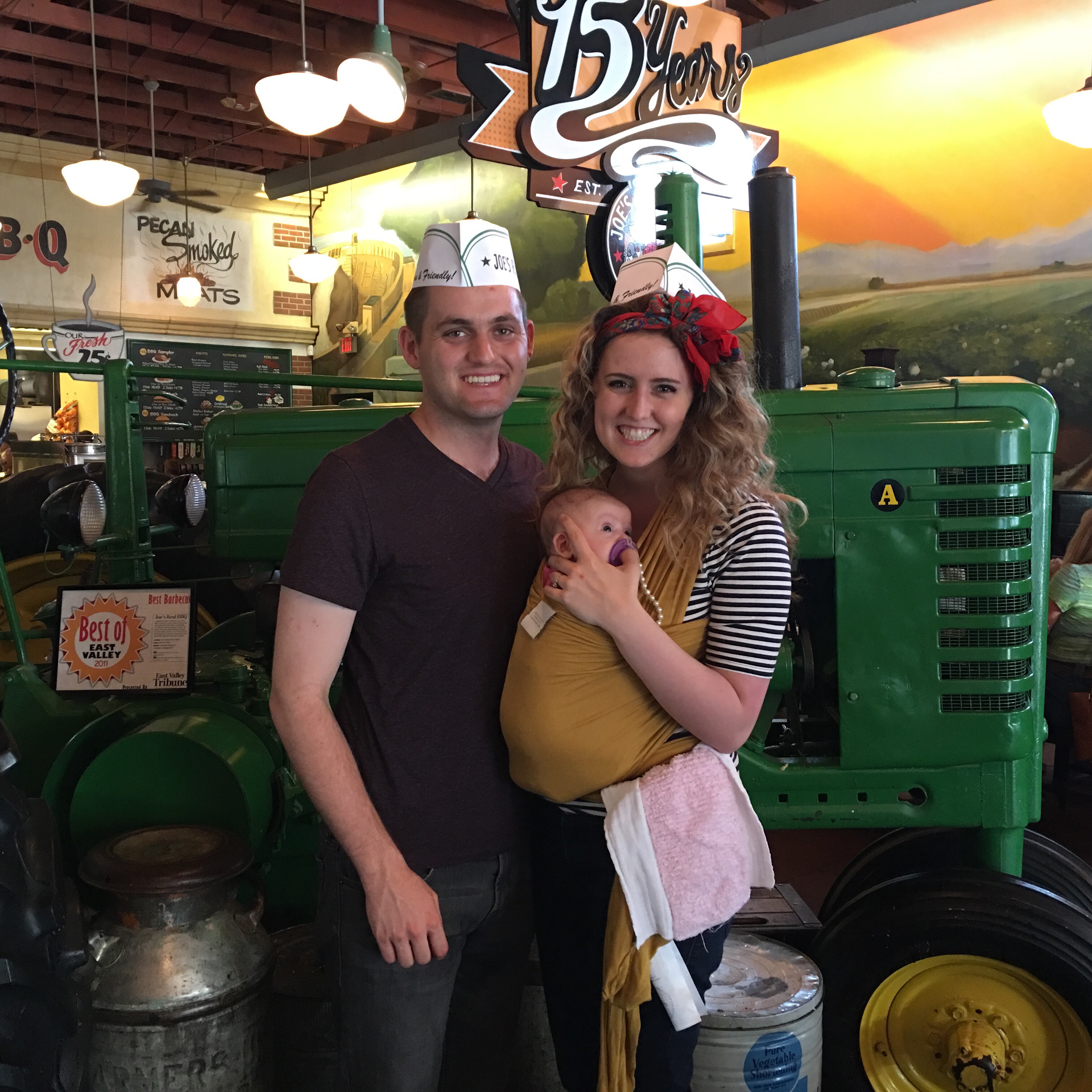 Birthday dinner at our house entails hitting up FREE food. We hit up good ol’ Joe and had some BBQ. I’m a sucker for briquette with a side of home made apple sauce with my celebratory paper hat. I don’t know why everyone else does not take advantage of the Joe paper hat. This hat says “hello world I just had delicious barbeque”,” I support local business”, and “I’m recyclable.” I mean no one thinks it’s weird if you wear extra ears around Disney Land…