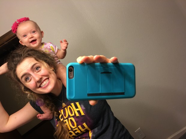 she thinks she is so big! shoulder rides are pretty exciting. plus i like living dangerously with a spit uppy baby