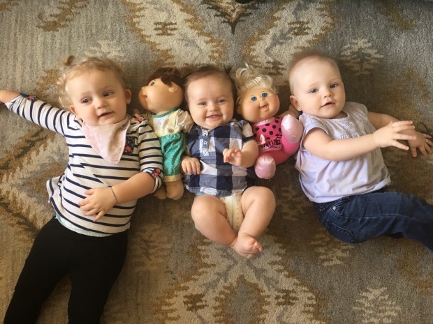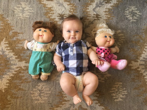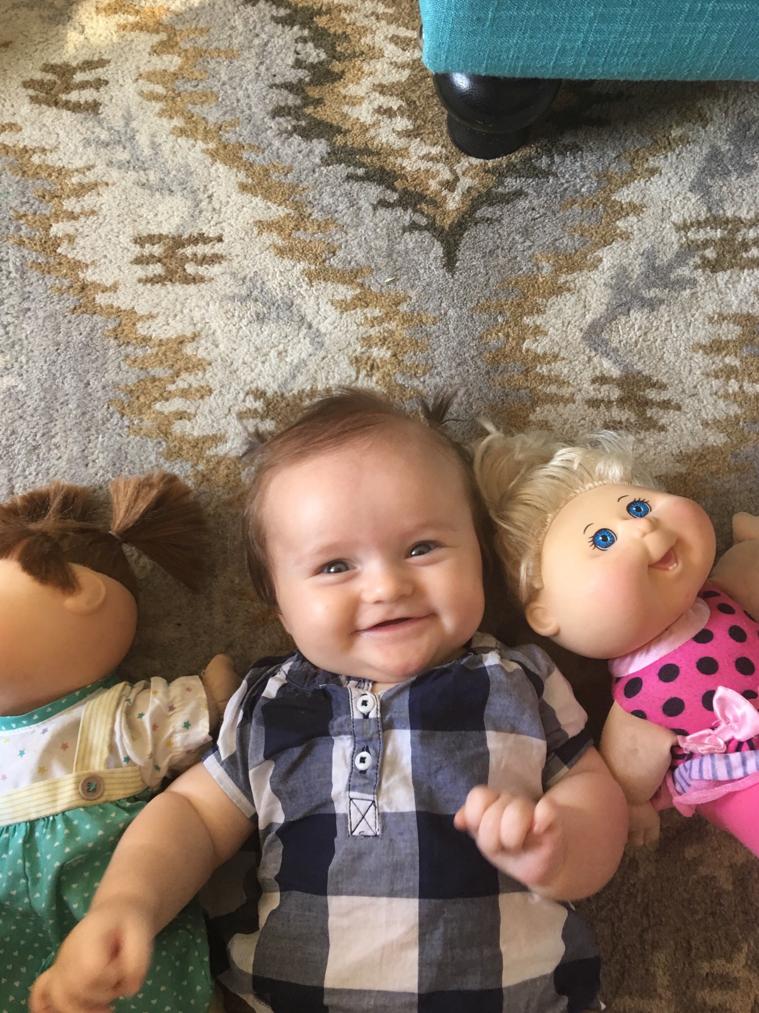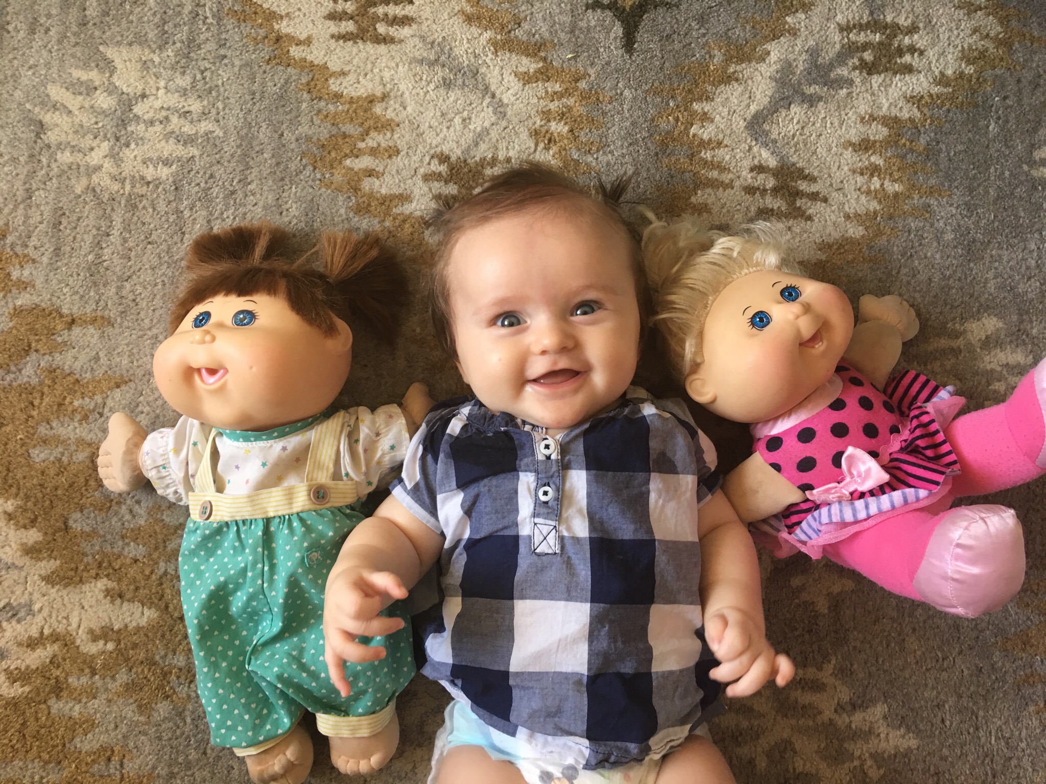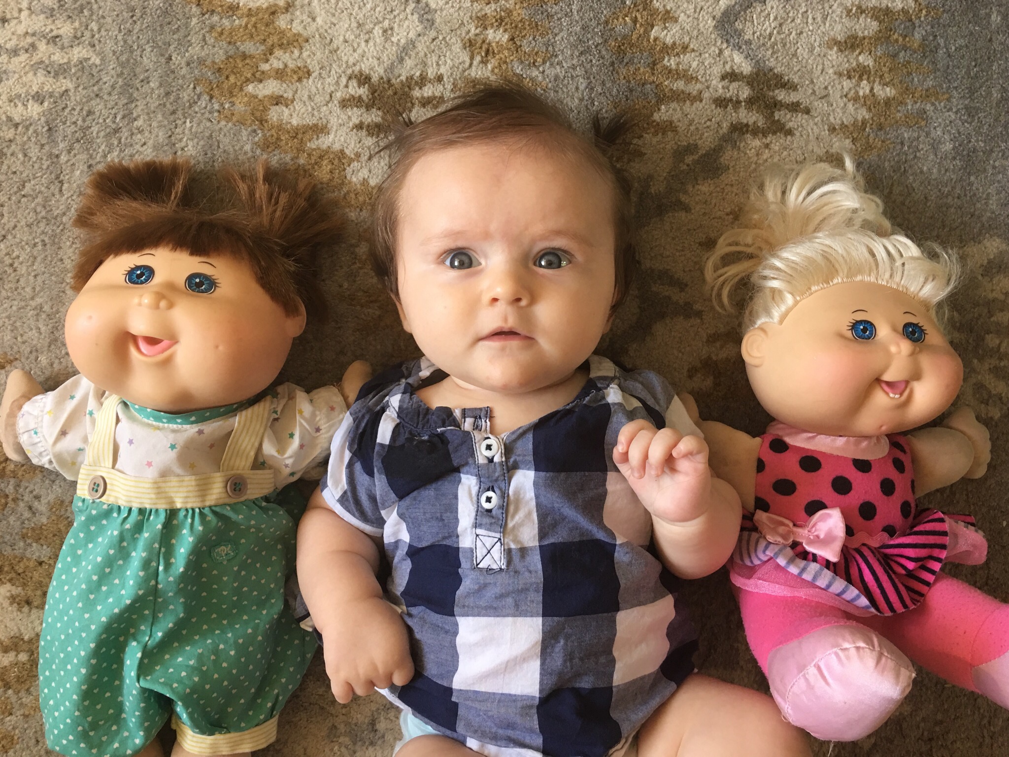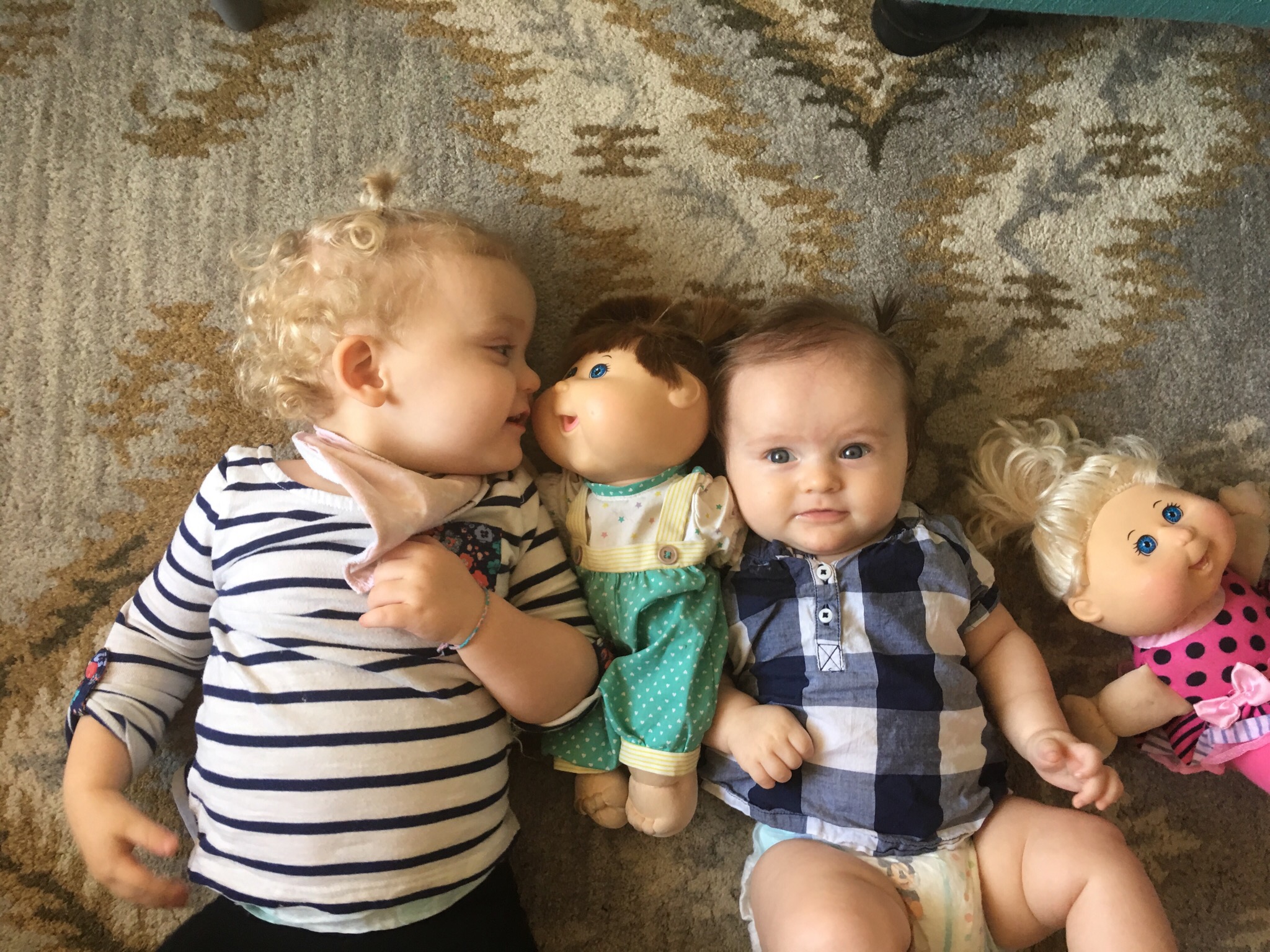 Jo gave Hazel pigtail!! Ahh, so much adorable. Then she borrowed 6 baby dolls from her neighbor for her “typical BYU family of 10 kids” for Halloween. (Genius idea). Hazle looked so much like a Cabbage Patch that we had to take some photos. How could we not?