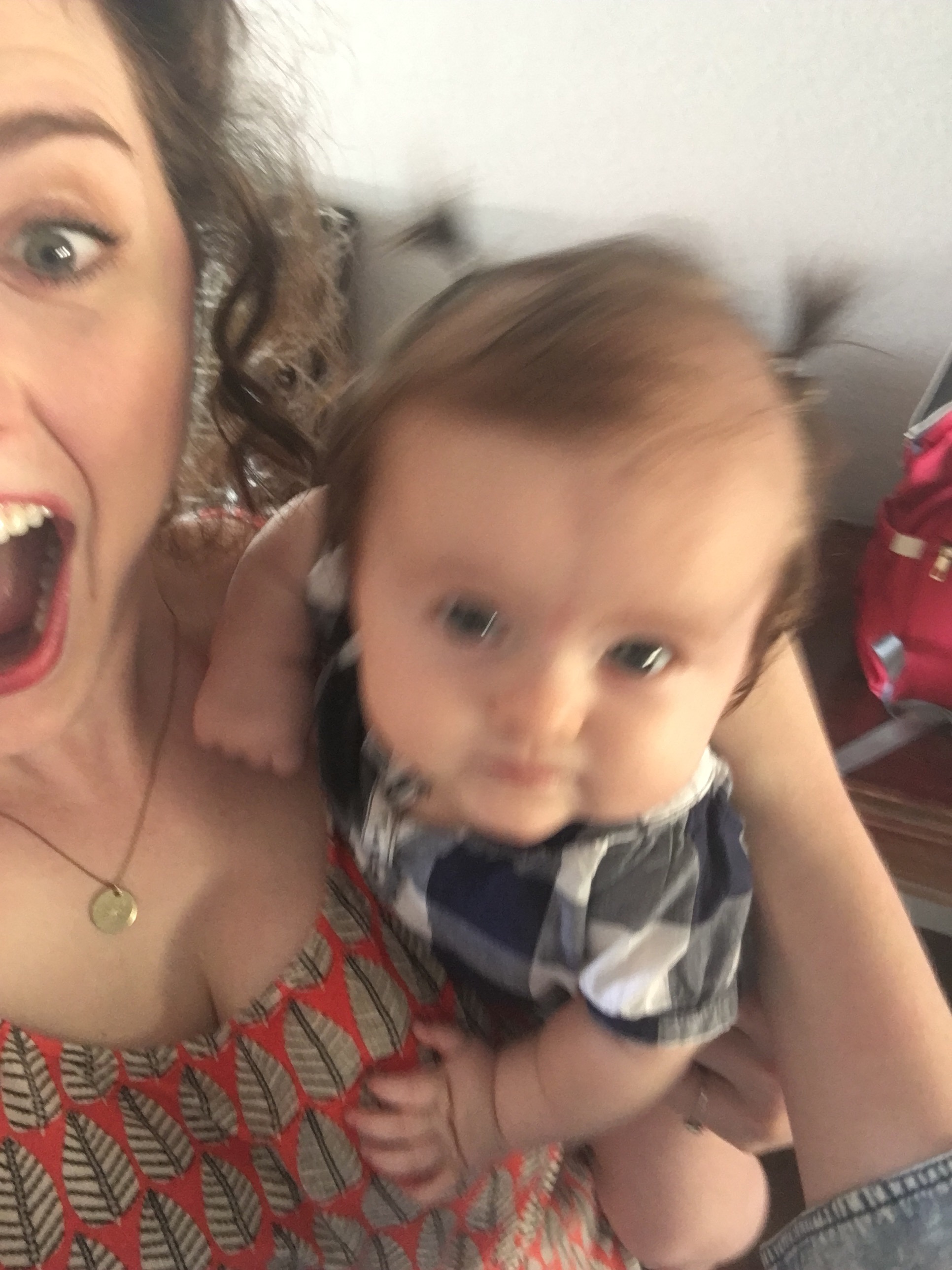 At her 4 month check up appointment Hazel weighed 15.2 pounds (75%), was 25.5 inches (90%), and her head measured 17 inches (whopping 98%).