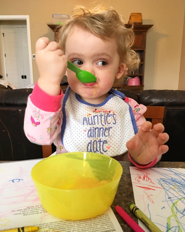 I had an early church meeting a few weeks back so Marc was staying home with the girls to have a pancake party that he made. And I was walking out the door, Ruby turned around in her chair and yelled, “I LOVE YOU! See you later!!”