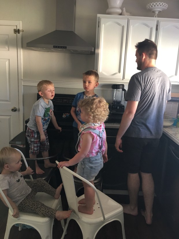 everyone needed to be on a chair and “help” and watch marc make the pancakes.