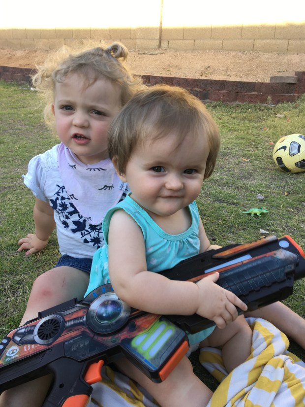 Saturday we had a Papa and pizza party!! We borrowed Buba’s laser tag guns. The boys we SO excited to play with REAL guns. And when the babies went to bed we played 3 round a of Settlers of Catan. Dad won 1, I won 2.