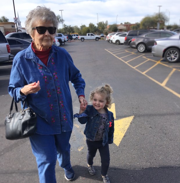 I loved that Ruby insisted on holding Grandma Bobbies hand and sat next to her at the Restaurant.
