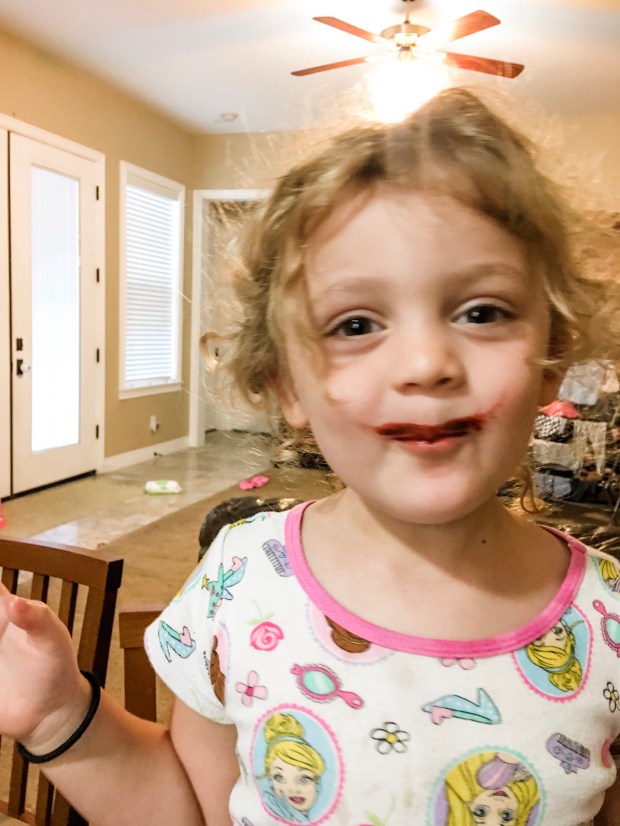 For lunch we had taquito taco salad with that tasty tasty Trader Joe’s cilantro ranch dressing. Both the girls licked their plates. Everyone went down nicely till Levi woke up. He was having a hard time, but eventually I coaxed him back into a sleepy submission and we all napped.