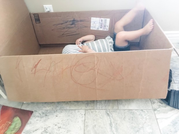 And then later this morning the kids just had a ton of fun playing in the large cardboard box in the family room (thank you Amazon).