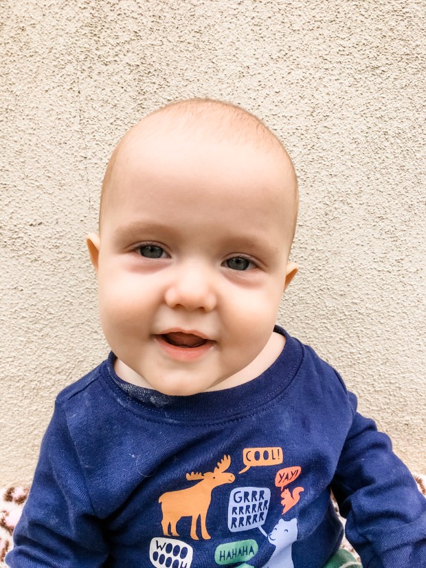 Levi is the happiest most content baby during the day, but struggles to sleep at night. So that sentence is actually read, “I’m not getting much sleep at night.”