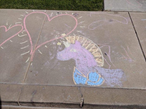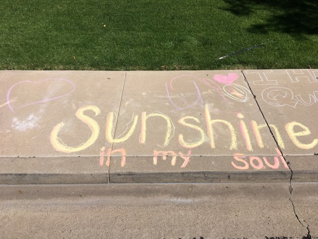 We participated in the “chalk the walk” movement to sidewalk chalk happy things while more people are out walking during the day.