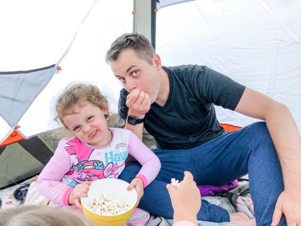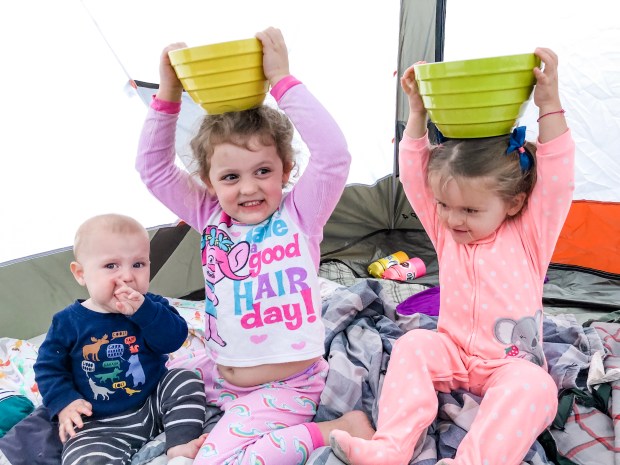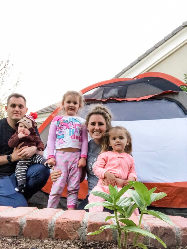 Friday morning was fun to wake up cozy in our tent and it chilly outside. (Fifty degrees is practically winter for Mesa). Then Marc took the girls over to the school parking lot to ride scooters and cars while I napped the boy, started the mountain of camp fire smelling laundry, and squeezed in an online cardio workout. I am so determined not to put on the quarantined-fifteen. (You know, like the college freshman-fifteen). So we have been moving our bodies and Marc and I are constantly in competition to see who is getting the most steps in on the daily.