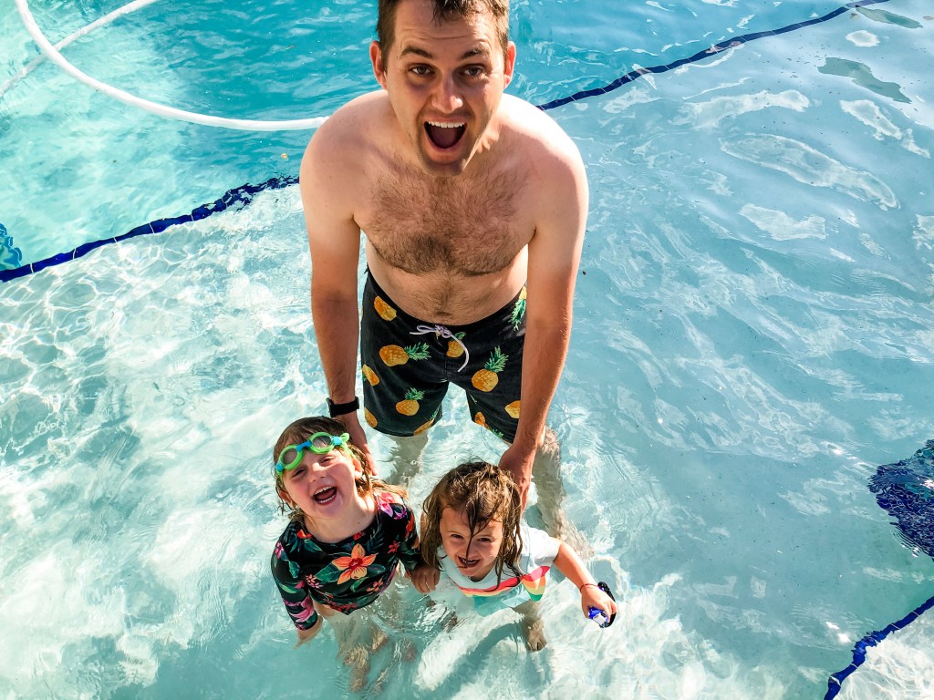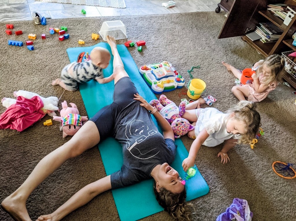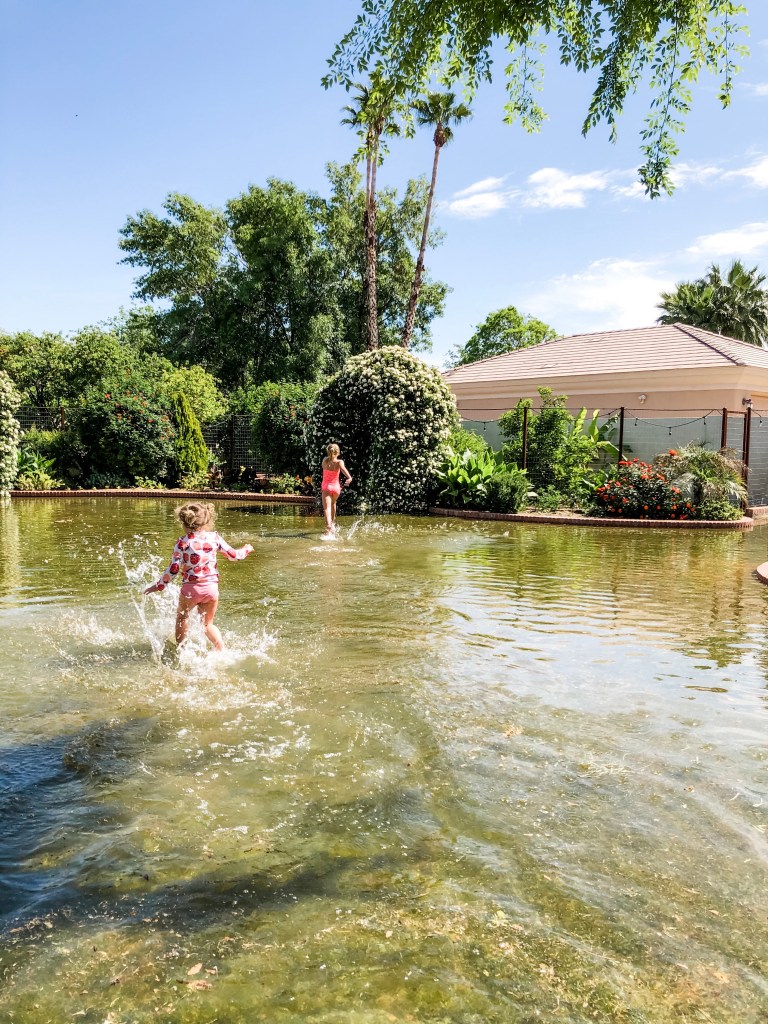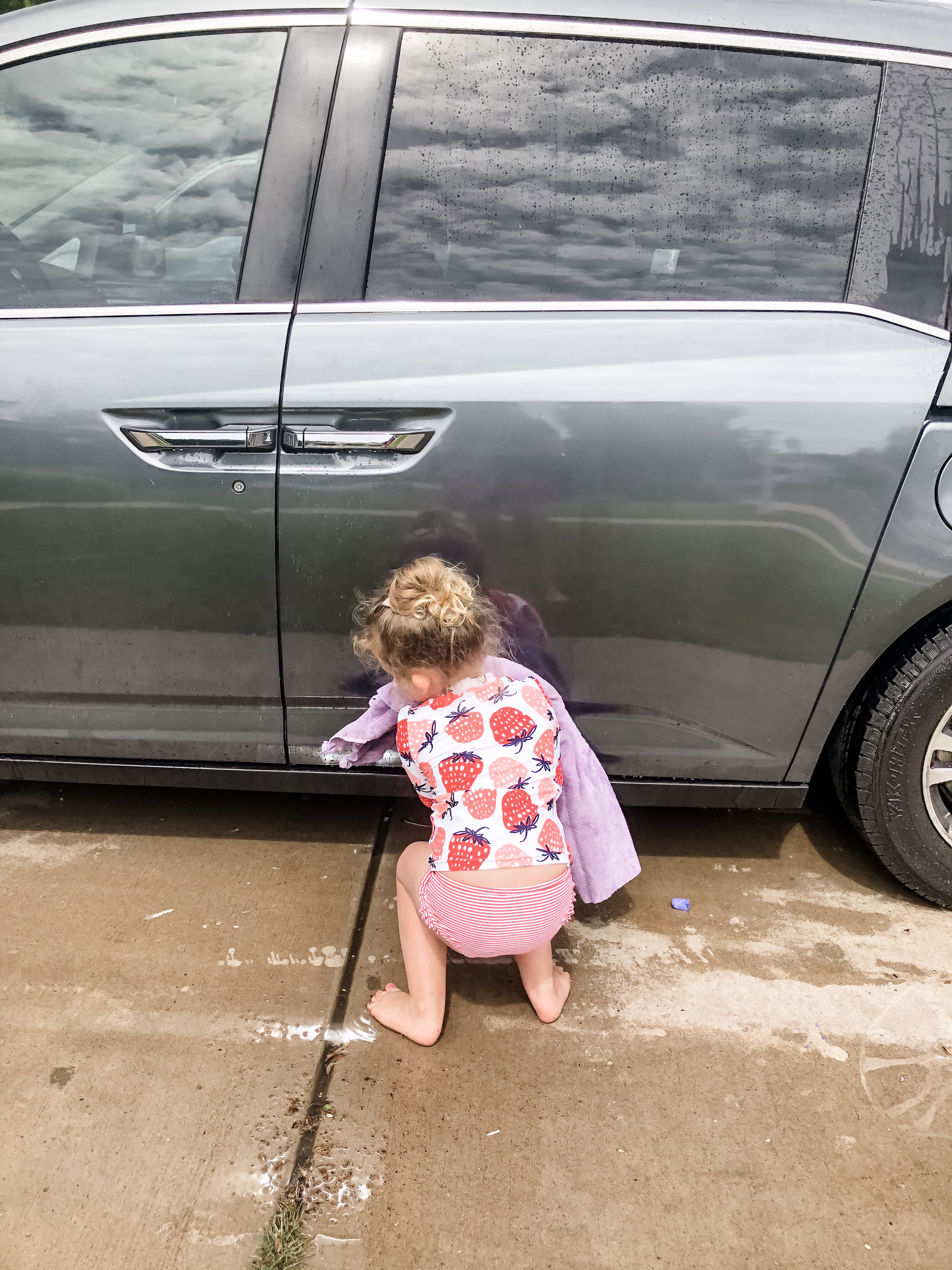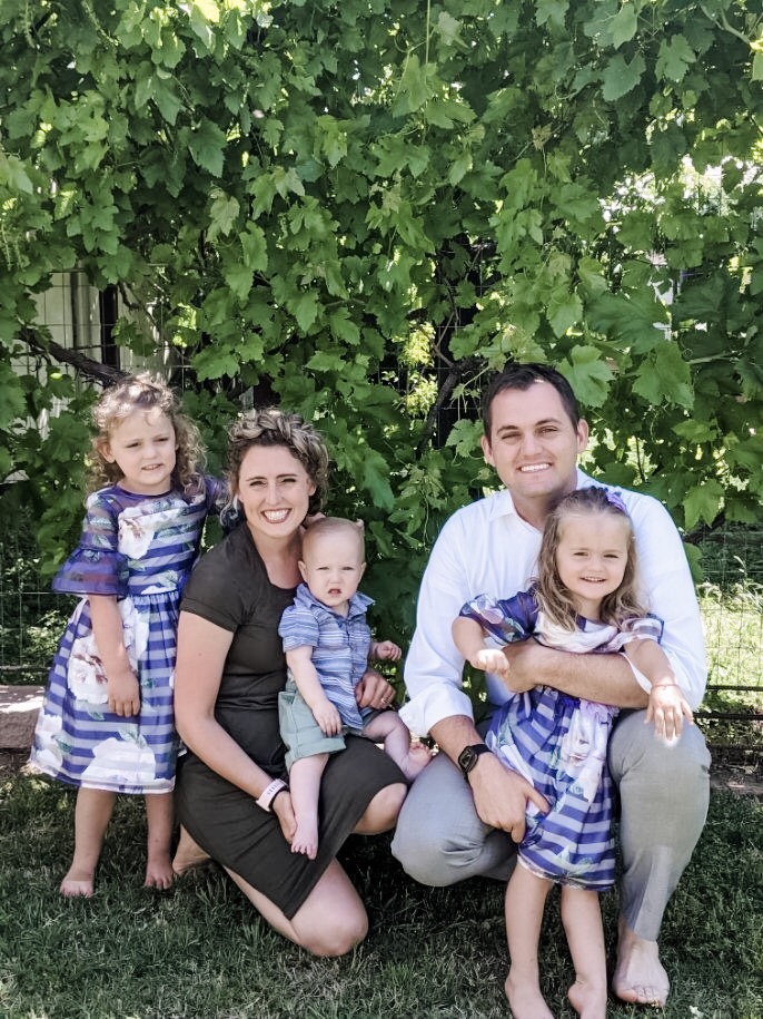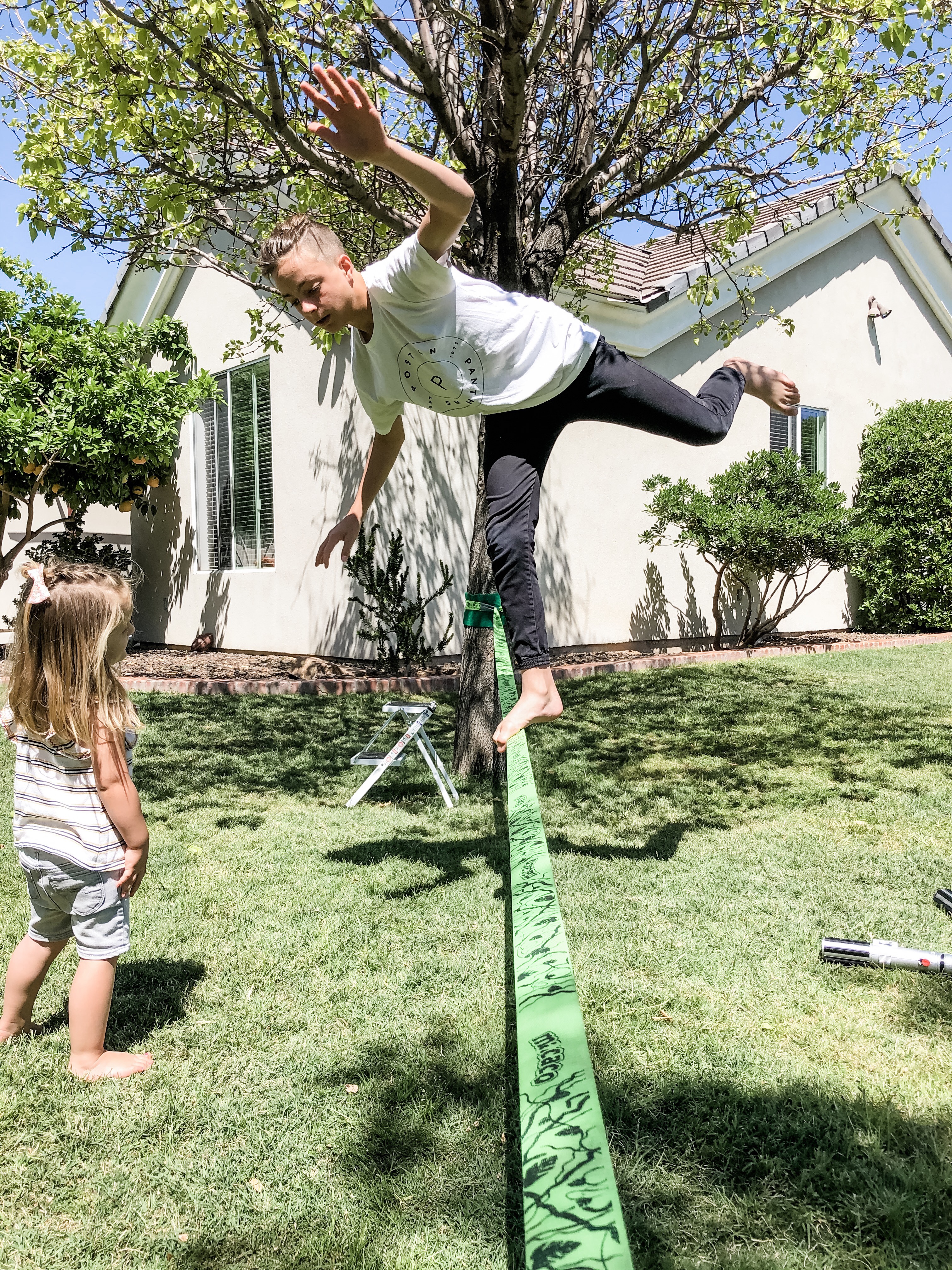 This is the beautiful brownie trifle I made – fudge brownies, homemade caramel sauce, chocolate mousse, strawberries, and fresh whipped cream. It’s real good. Marc said,” Only the best for Jesus on Easter because the resurrection is so sweet.”Papa Tucker did the beautiful flower arrangement. The girls Easter dresses are from Alisa’s wedding in December. But the girls got sick and didn’t get a chance to wear them then. So thanks Alisa for picking fantastic winter wedding colors that also make the prettiest dresses for Spring. This boy thinks he is so funny and tries to pull out all the wipes any chance he can get. Hazel wanted to “do my hair” with her glow stick. She kept telling me,”Mom, your hair just looks so beautiful!” I don’t know why this boy thinks he is SO big and that he can just crawl up on stuff whenever he wants…“Look Mom, one hand.”For Family Home Evening, we had a lesson about King Benjamin,one of my favorites from The Book of Mormon. And he gives his sermon from a tower so all his people could hear, so we did the same with bowls of kettle corn. The girls convinced Marc to take them swimming. He kept telling me this would be super short lived and they would be back inside in no time. Thirty minutes later, the girls reluctantly came in to take a warm shower despite their chattering teeth.This is easily my favorite photo from the week!! Hazel doing her thing, blowing bubbles.The Denton’s hung up their slack line, so we all took a stab at it. You know, just working on our quarantine skills.And Levi sat happily in the shade with a sea of goldfish to munch on while we tried our best at balancing. This is a typical morning: me trying to finish my workout before everyone is awake (never happens) and my kids play doctor and busily perform life saving surgery while I finish my cool down. We spent the morning at Jo’s and this cute guy got his hair cut again. Levi es muy guapo!One night this week, I was making dinner at home when my mom called. She was making dinner at her house. She said she was making chili and cornbread. I told her that sounded much better than what I was making and asked if we could have dinner at her house? “If you want.” So we had a dinner party at Grammy’s! We played on the backyard and Ruby asked if I would take her photo. So here is a series of action shots of Ruby that just make my heart happy. The grand finale! This week I asked Ruby what she wants to be when she grows up, “a big girl!” Friday was irrigation day at our house. (Or Moana water as my girls like to call it. Because it looks like the ocean in our backyard) We played out on it all morning. Isn’t our backyard so dreamy?Eve pulling Hazel on the skim board Hyrum pulling Ruby on the skim board Hazel cracks me up. This is the only way she likes to get her hair wet. Ruby played mermaid like this in the water for sometime, completely content on her ownSaturday we washed Nacho. The girls LOVE washing the car with Marc. They always cheer and race to get their suits on. Saturday afternoon, Levi and I were convinced to make it out to the pool with the rest of the family, though we did not venture into the freezing water“SO COLD” Brad’s flowers arches are just gorgeous and needed to be documented.