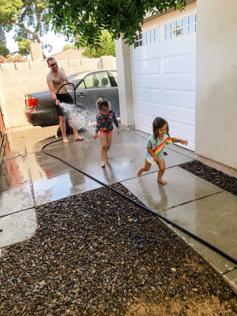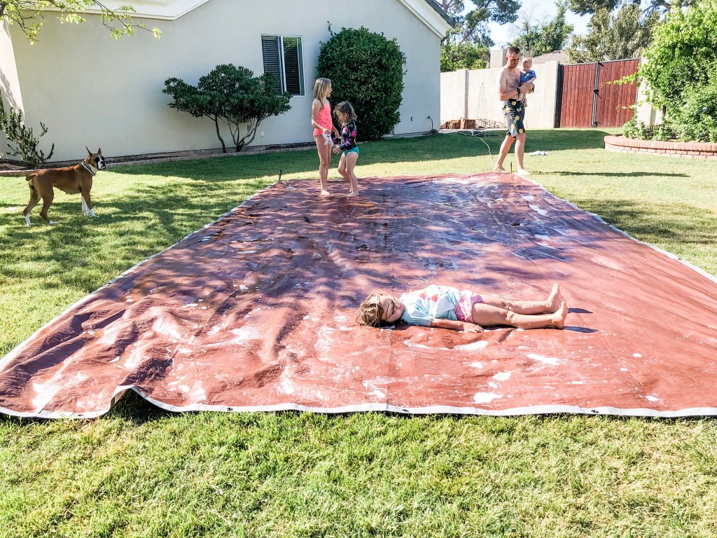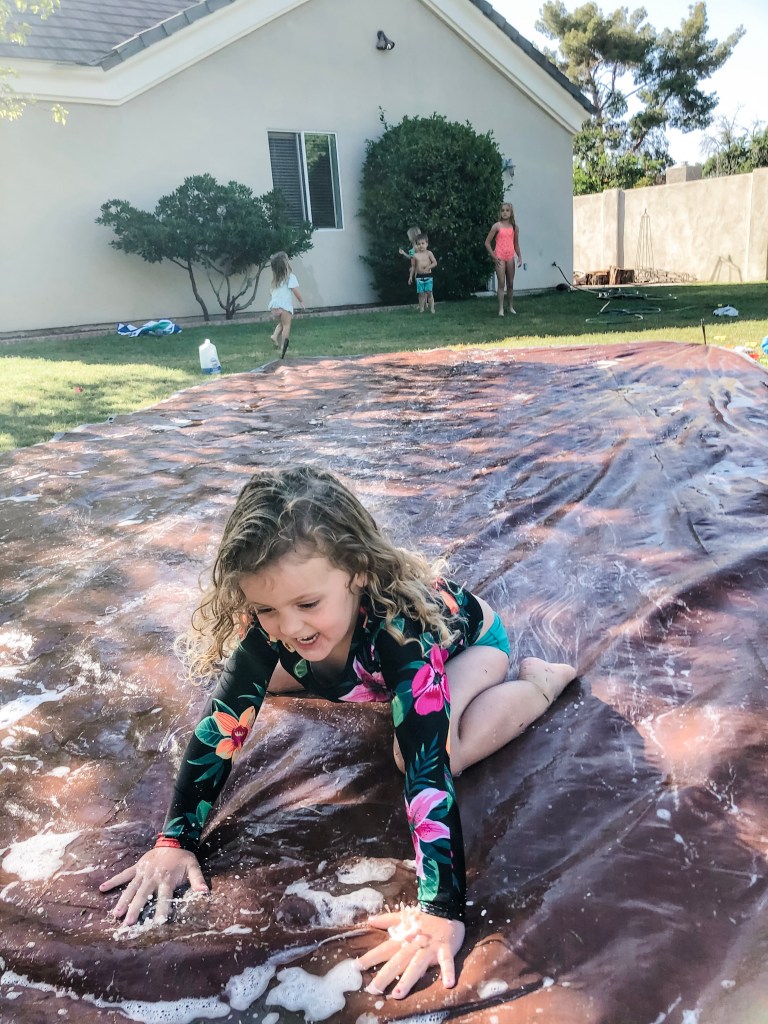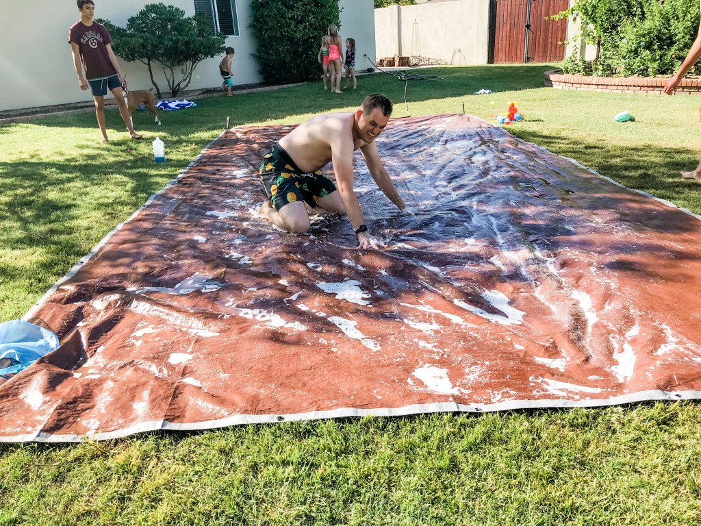 Another day this week the Denton’s busted out a giant tarp and dish soap for the best homemade slip and slide ever!