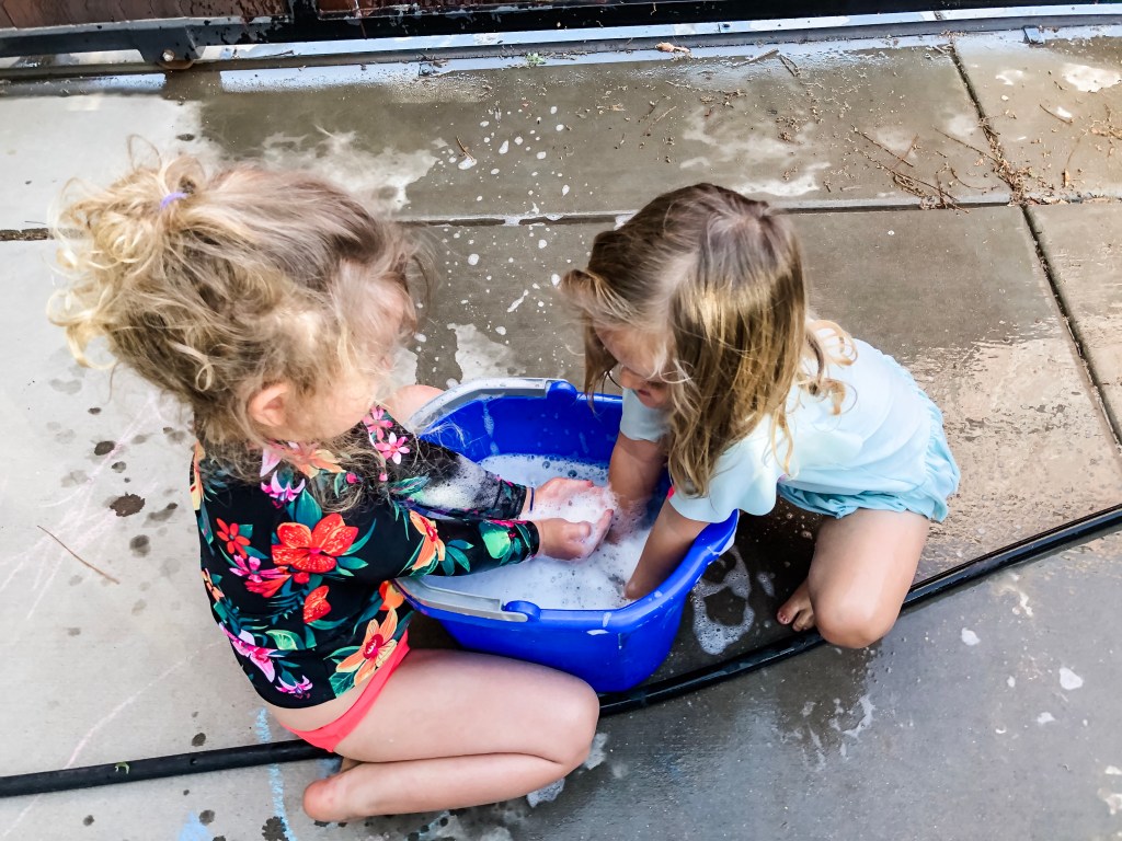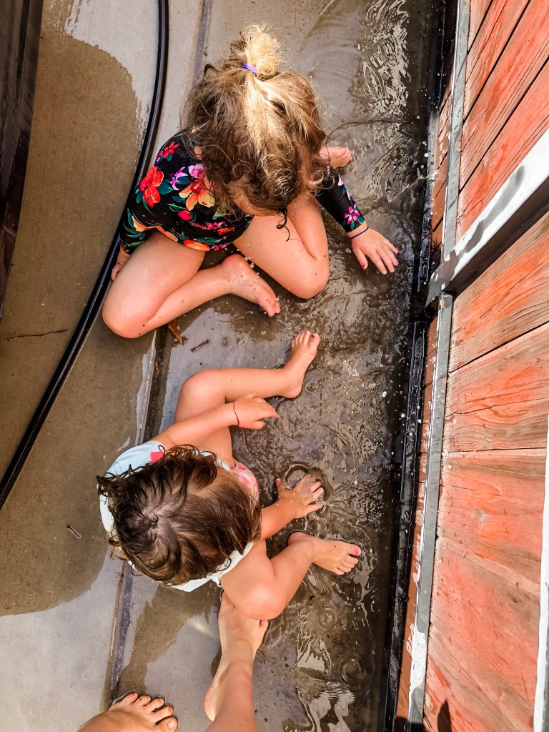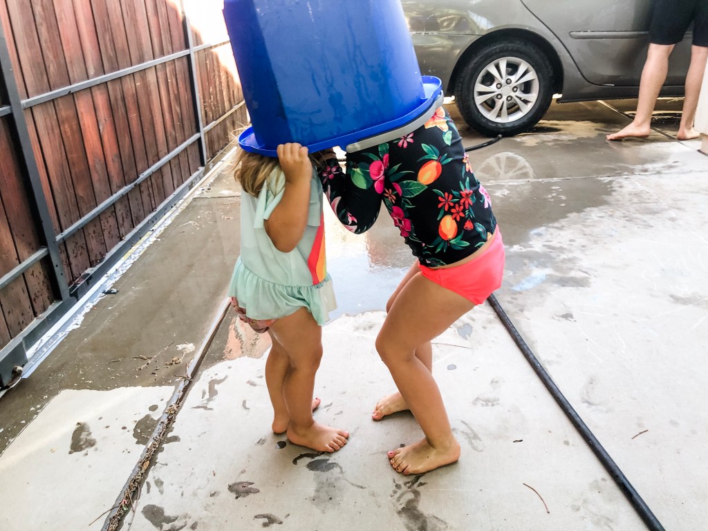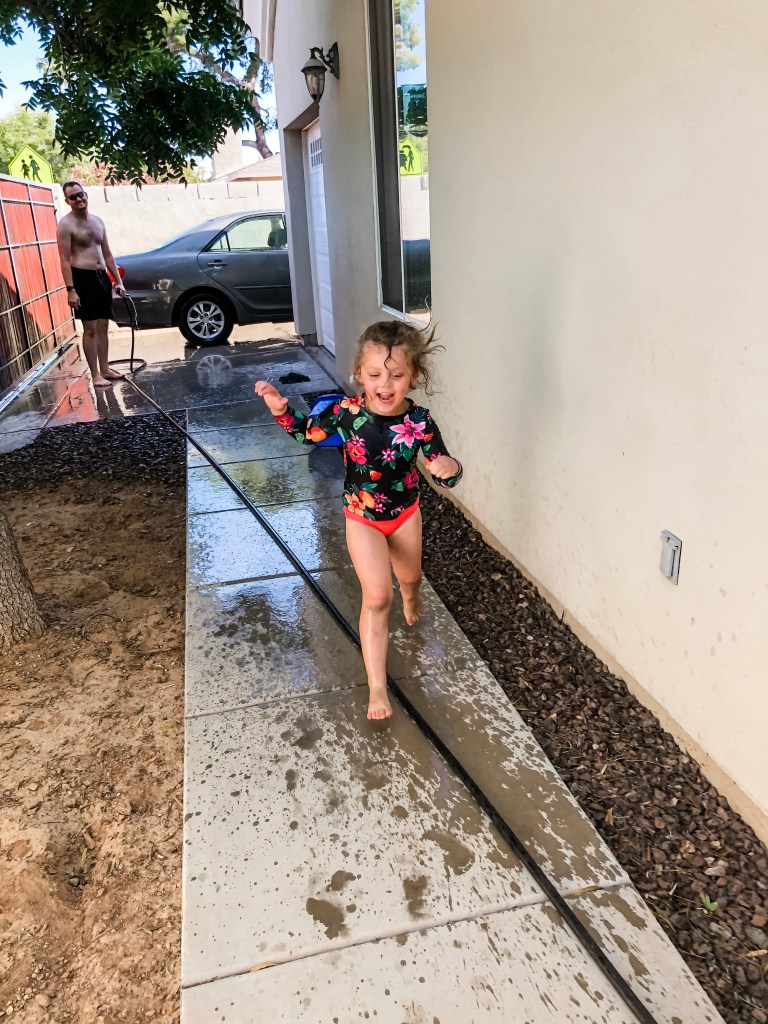 Another day this week the Denton’s busted out a giant tarp and dish soap for the best homemade slip and slide ever!
