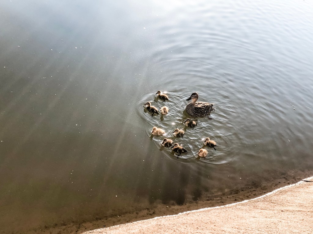 One morning we went for a family walk along the canal to look for the baby ducks Marc had seen the previous morning. We had barely stepped on the canal path when we found the mama and her ten little ducklings!