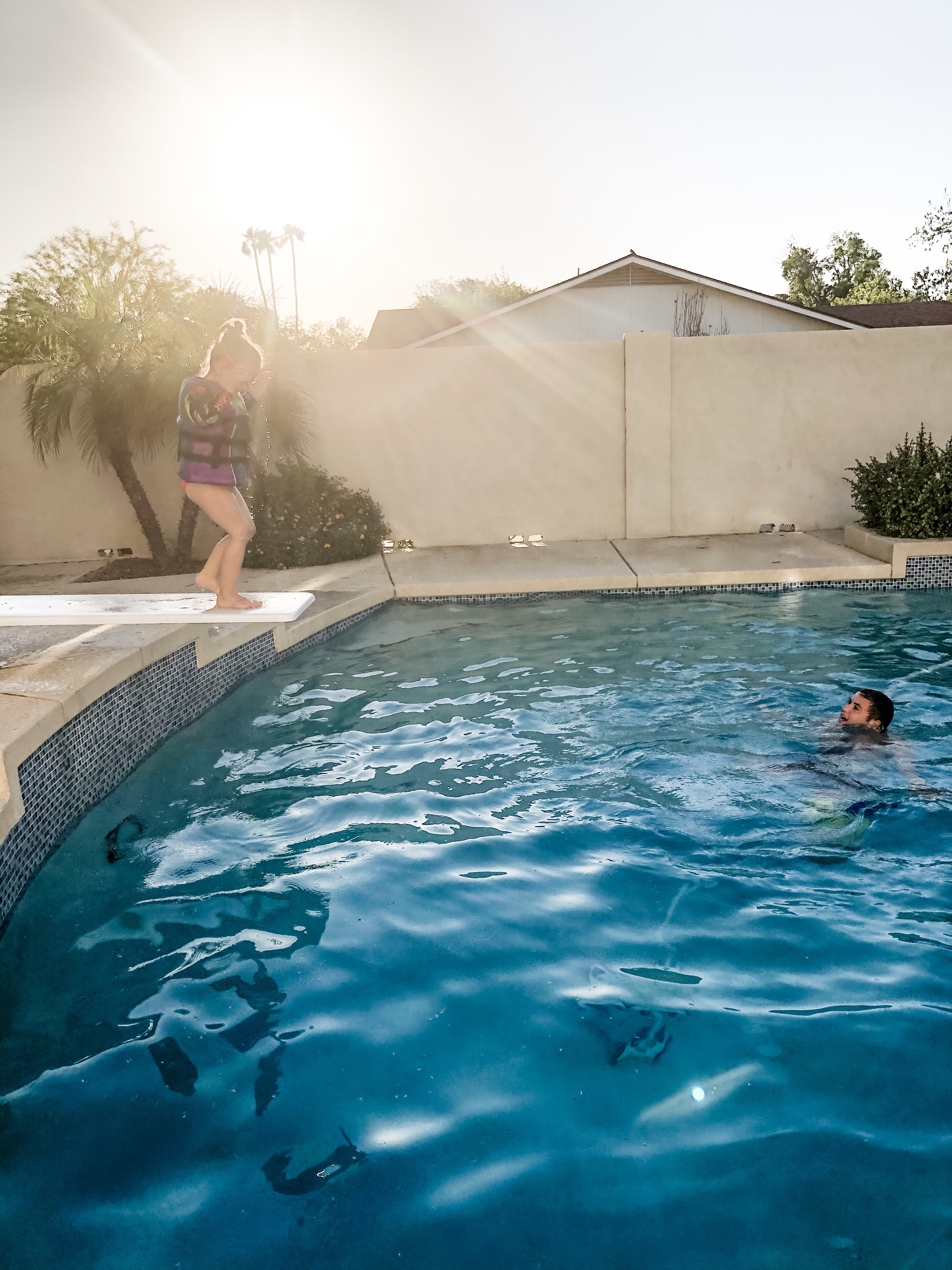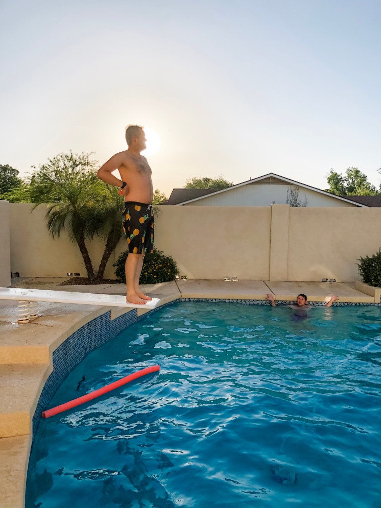 Seth and Kenzi came over for a swim party. It is always a good time when Seth bust out some fun diving tricks.