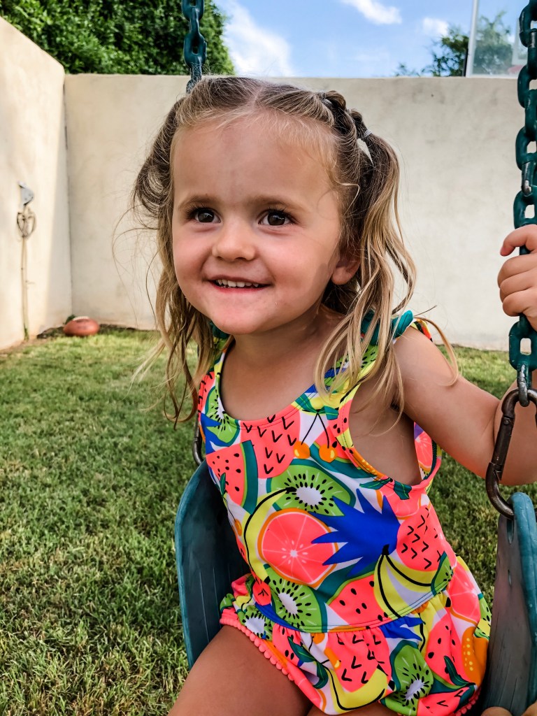 Ruby, also gorgeous. Got a real smile, and she insisted posing with that orange bell pepper. It was just a perfect evening of swimming, peaches, and playing outside.