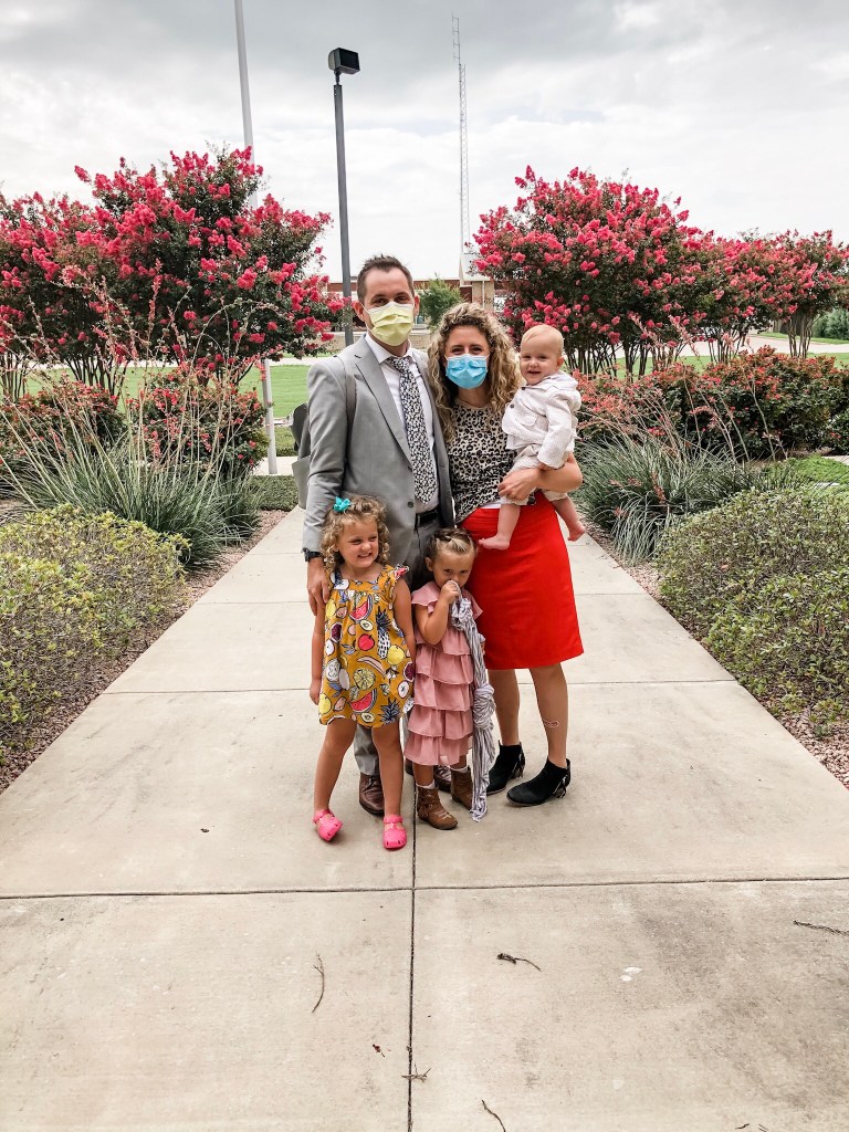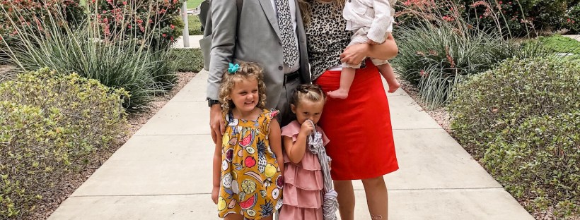 Highlights of church included: meeting new people in the area, taking the sacrament at church, Ruby rolling around in the floor under the pew (especially fun when the entire world has a heighten awareness of germs), Haze rubbing her face mask up and down the pew, and Hazel singing, not so quietly to her self at especially quiet moments “booty, booty booty, booty…”, and Levi the most handsome baby boy you ever did see in a seersucker suit.