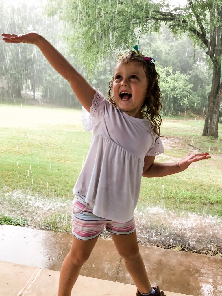 A family with boys similarly aged to my girls brought an adult electric toy car. And it was wicked fast made only more awesome by skidding around in the puddles. So the kids had the time of their lives chasing it around the water.