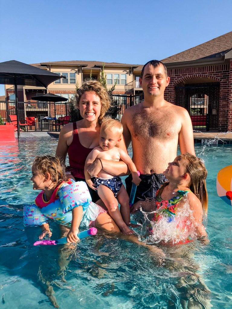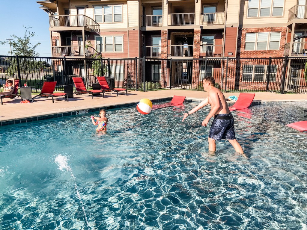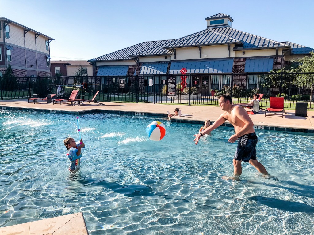Pool time is always more fun when Marc is home. This week’s water game was water baseball.
