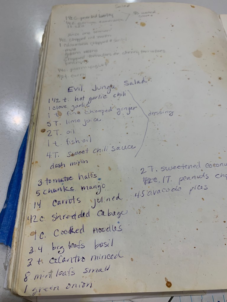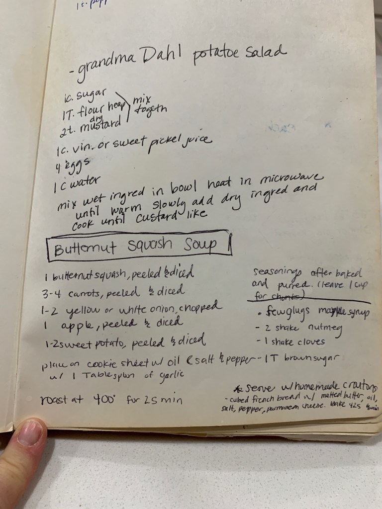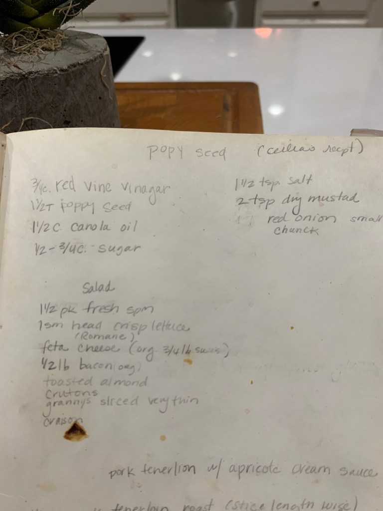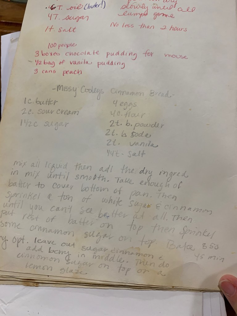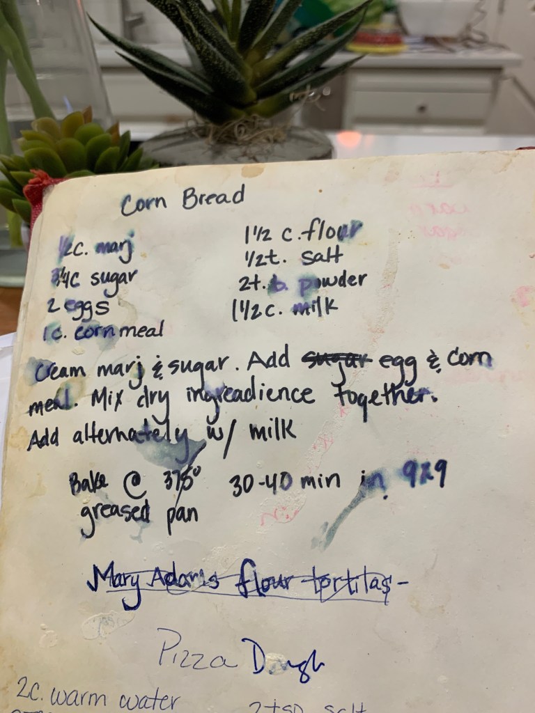 My mom is one of the best cooks and bakers around. And she keeps all of her favorite recipes in her treasured Red Cook Book. To some, it would look like an ordinary, red bound, blank paged read sketch book. But to the well trained eye, and stomach, you would know it is magical and may be considered cookbook scriptures. (Is that wrong to say?) most of my childhood happy food memories come from The Red Cook Book. So before my mom came out for a visit, I wanted to make some recipes from it together. So I had her send me some recipes. So I thought I would just save them here as a reference spot for me, till I actually sit down to write them down in my own Red Cook Book (although mine is actually a light lime green).