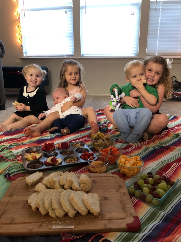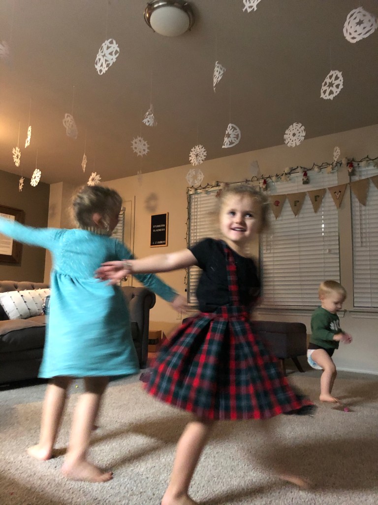 Here’s the girls with Charity. The Simonsen family is just the best and the ages of our three kids line up perfectly. We had a super fun Christmas movie and pj party all together. We watched Elf but the kids started loosing interest half way through, so we switched to an episode of Bluey and all played in the toy room.