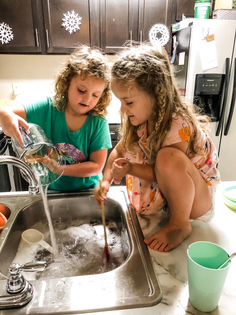 I separated the wild animals from each other. And then started at Hazel, “Hazel, you never have the right to hurt your sister ever.” And this is the point in my mom head of what to do for a consequence? Because you can’t start off by saying “you never have the right to hurt someone” and then follow up with spanking them. That teaches nothing. So I remembered something I read from The Crum Sisters, and I told Haze she had to first apologize to Ruby, then she had to do some service for Ruby. I decided on she had to clean up their room of the mess they made together. Hazel said she was sorry, but was not thrilled about the chore. I didn’t help her but I sat and cheerleadered her through it. Then I got them snuggled cozy together on the couch to watch an episode of Magic School Bus.