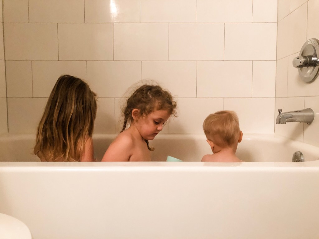 I need to take a shower so I asked them to please stay in their room, and that I did not want to see any little girls while I was in the shower. Ten minutes later Ruby was in my bathroom to inform me that Hazel was poopy. “Hazel will have to wait,” I said through conditioner filled hair.