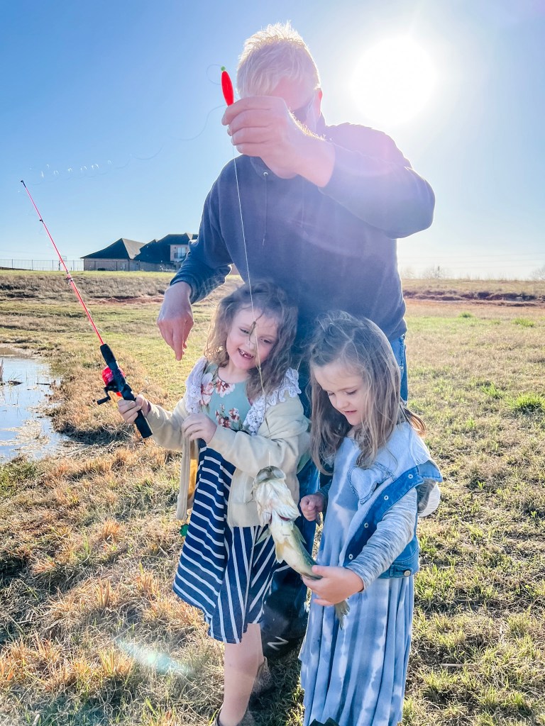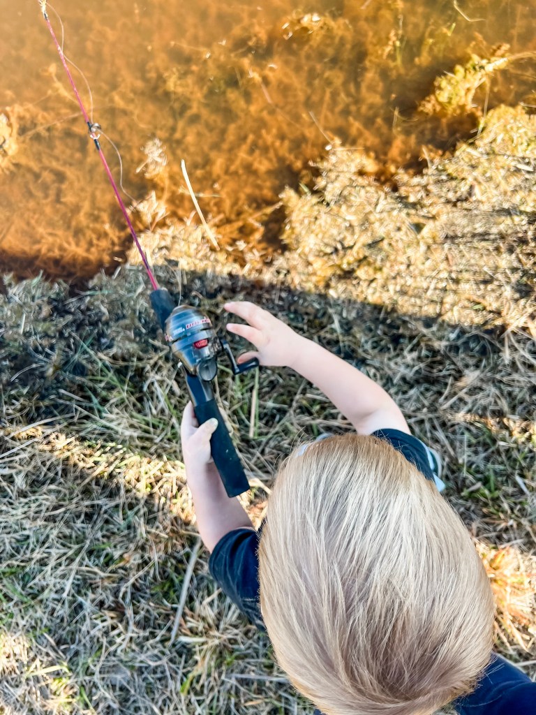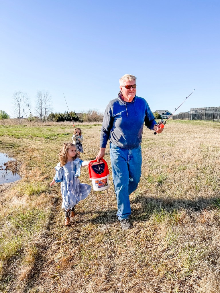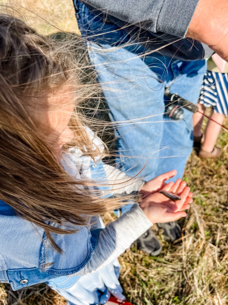 Hazel was our little minor whisperer. She had no interest in the fishing poles she would just reach in the bait bucket and hold the little fishies and talk out little dialogues with them. Her jacket was soaked up to her elbows on both arms, and she was thrilled.