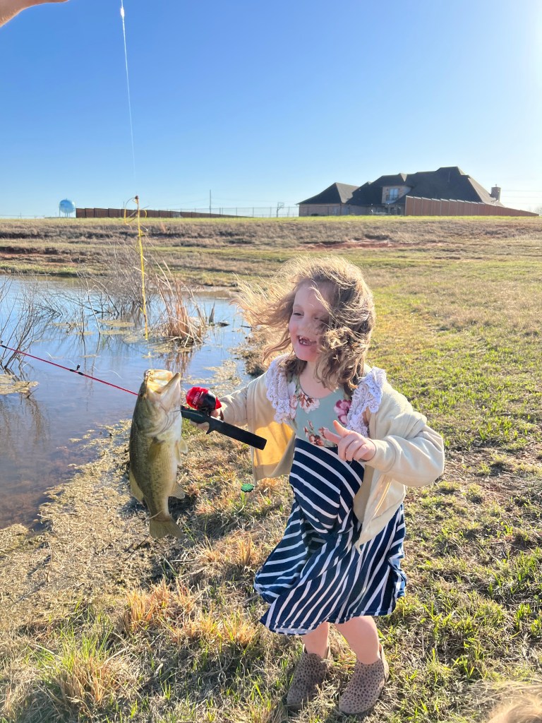 Ruby’s persistence paid off, and she caught an impressive bass.